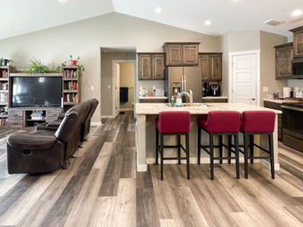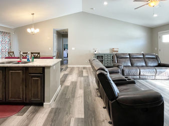 Beautiful one level home featuring an open-concept floor plan with soaring vaulted ceilings and stunning custom cabinetry throughout. The kitchen shines with charcoal color appliances, offering both style and functionality. The spacious primary suite includes a generous walk-in closet and a roomy en-suite bath designed for comfort. Durable, easy-care LVP flooring flows through the main living areas for a clean, modern look. Additional highlights include a double-car garage, concrete patio perfect for outdoor entertaining, low-maintenance exterior, gas furnace and water heater, and central A/C for year-round comfort. This home truly combines style, convenience, and easy living.
