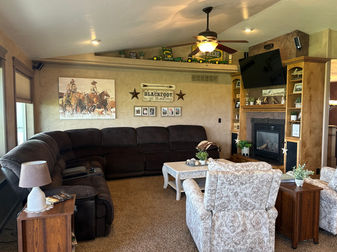 Experience the perfect blend of comfort and space, in this impressive 5-bedroom, 3-bath home set on 6 beautifully maintained acres with mountain and valley views. On the main floor, you’ll find three spacious bedrooms, including a luxurious primary suite complete with a large walk-in closet and private en-suite bathroom. The heart of the home features an open kitchen and living room area with vaulted ceilings. You will love the custom cabinets and granite countertops in the kitchen. The open-concept main floor offers a warm, inviting atmosphere centered around a cozy fireplace ideal for both entertaining and everyday living. From the dining area step out onto the covered back deck to soak in the stunning views or enjoy outdoor dining with the built-in gas hookup, perfect for your grill. Downstairs offers two generously sized finished bedrooms, with a completed full bathroom just across the hall. A large, great room provides endless possibilities and is ready for customization. Stocked with sheetrock and ready for you to complete. Includes a water line making it easy to add a wet bar or kitchenette. A central vacuum services the entire home as well as the attached garage with a soft water attachment, making vehicle care a breeze. Property also includes a large 40x60 fully insulated shop, heated with a gas furnace and wood burning stove and its own full bathroom with toilet and shower plus 50-amp hook ups and RV dump station. Mature landscaping, with full sprinkler system, fruit trees, water rights, and so much more make this property a rare find.